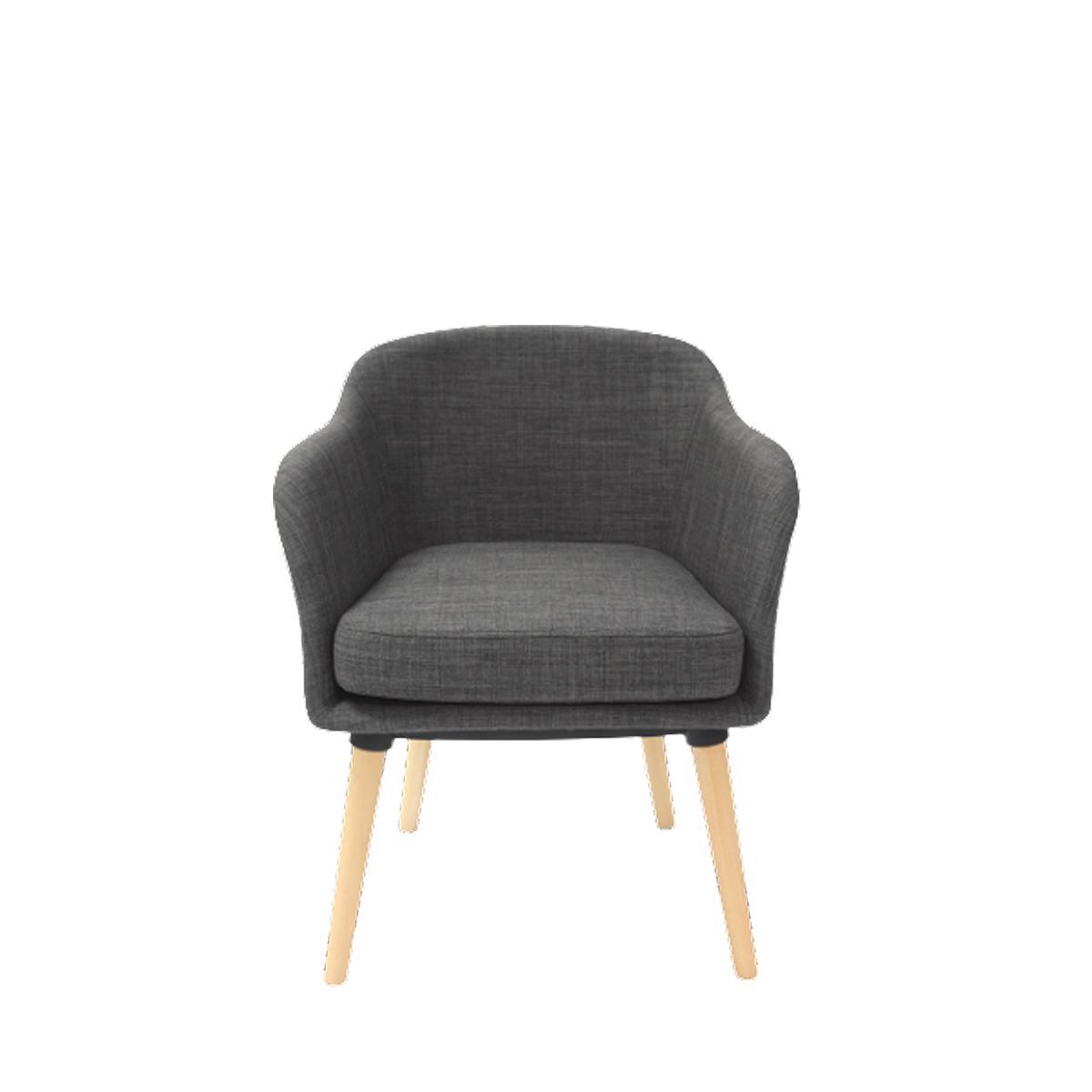 Occasional Chair fully upholstered in Grey fabric with natural wooden legs. Suitable to be used as a visitors chair, for reception areas and casual meeting areas. Enquire for alternative stain on legs.