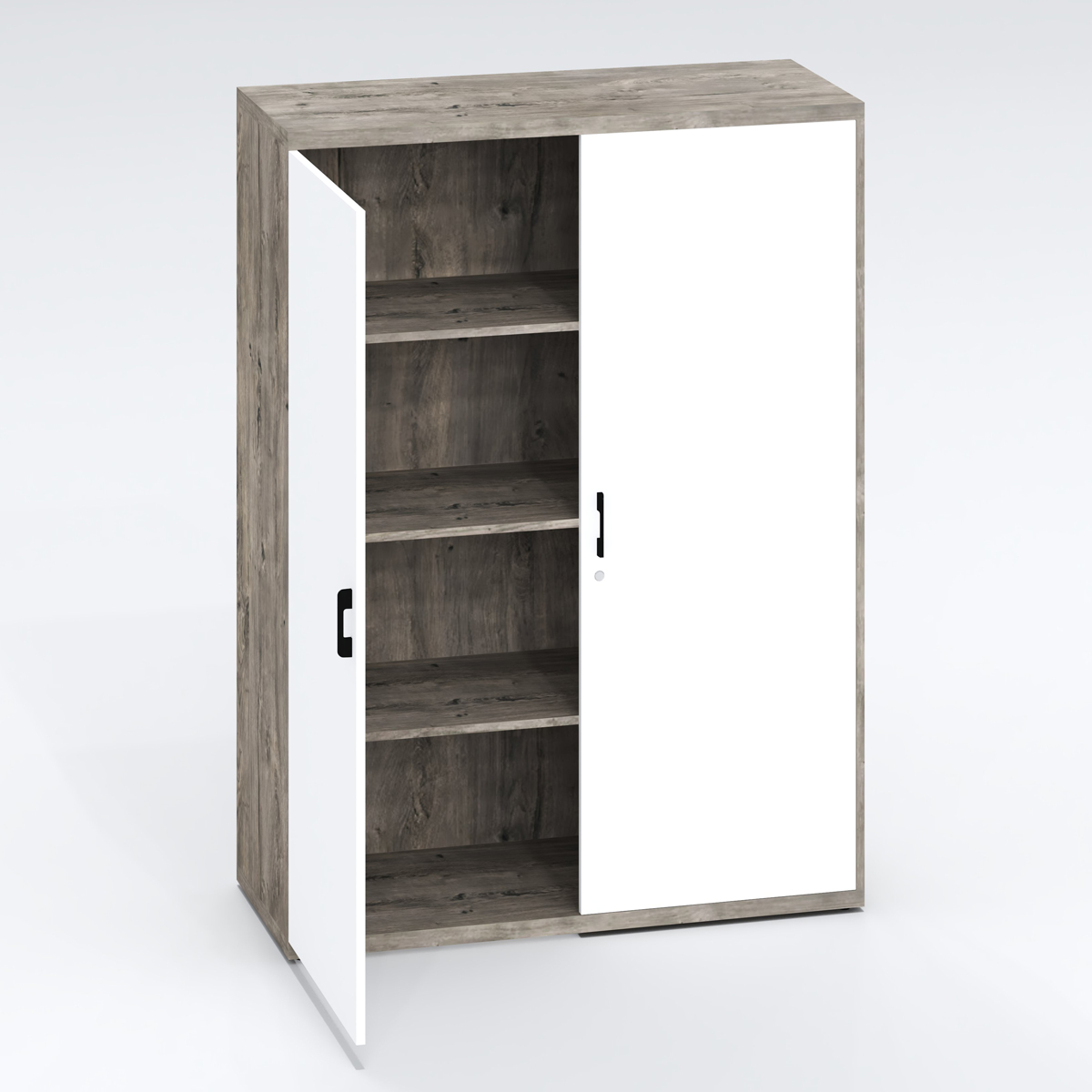 Filing cupboard with adjustable shelves, double hinge doors and optional multi rotating bar lock