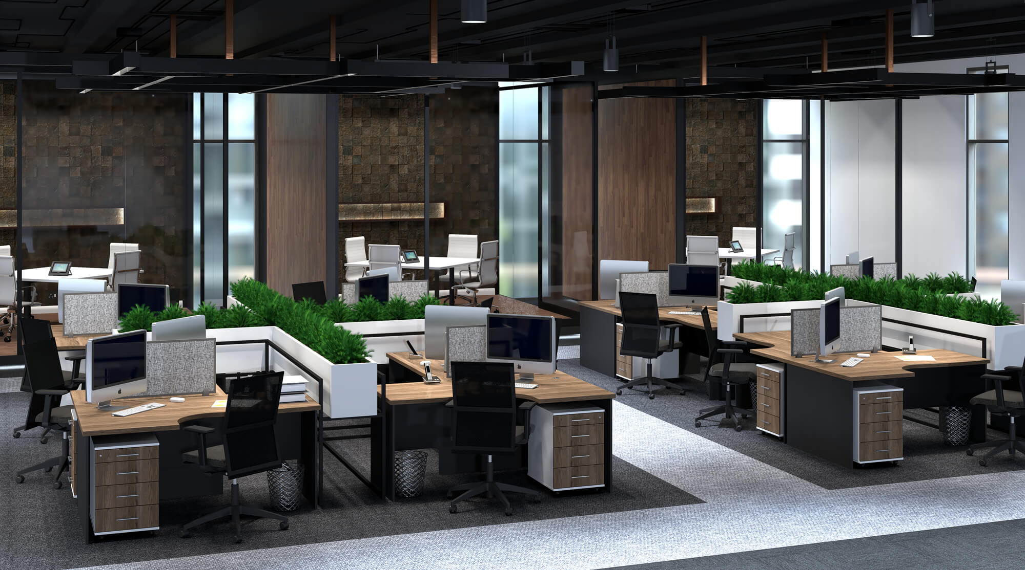 Our Desert range features a subtle curve in the worktop, inspired by the shapes created by rolling desert hills on the horizon. The curve also serves an ergonomic function as it allows the user to sit comfortably facing the corner of the desk, maximising the use of both sides of the work surface.